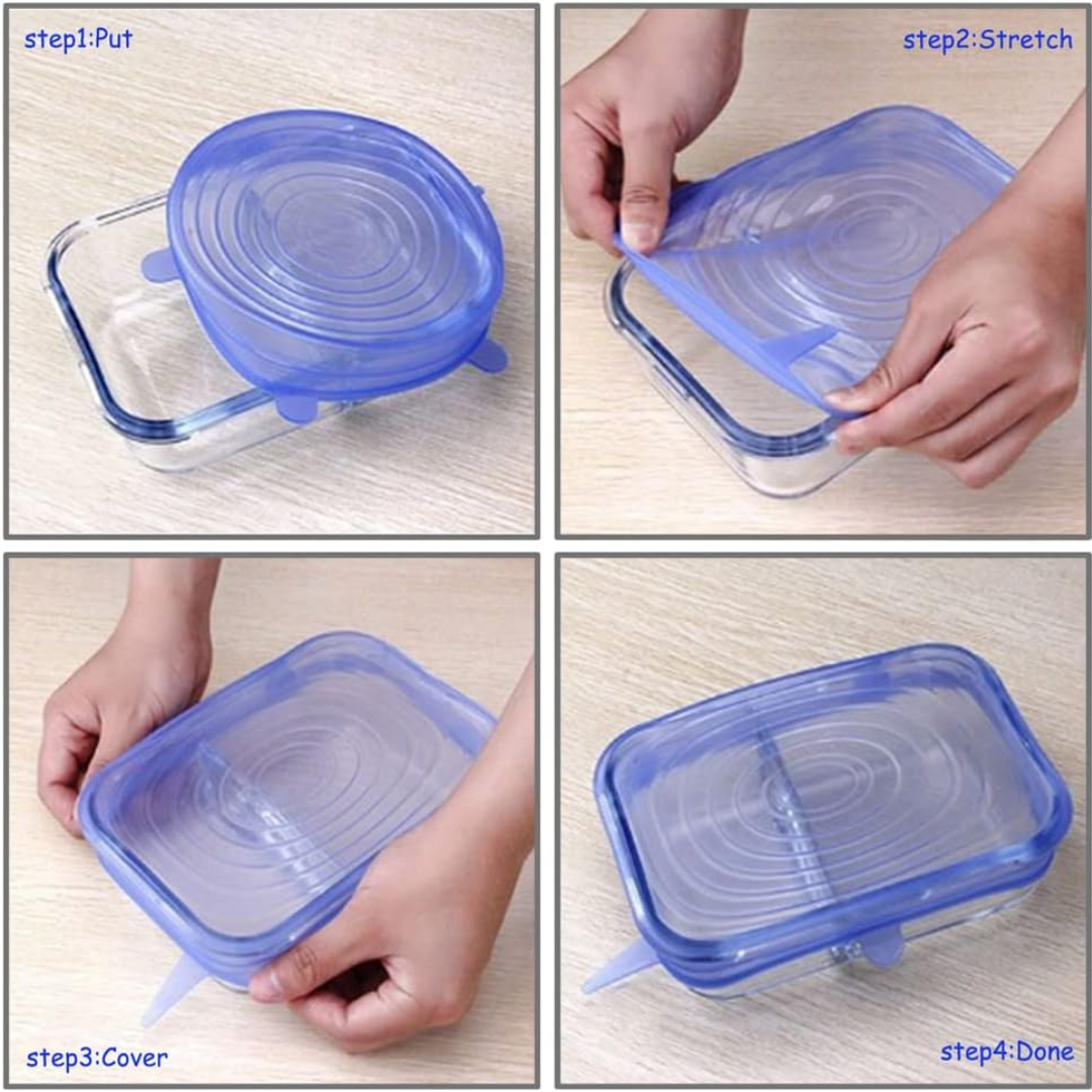 Rastegljivi silikonski poklopci se lako prilagođavaju svakoj posudi i održavaju svežinu bez prosipanja.